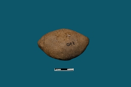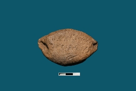 | Description / विवरण | A terracotta seal bearing a two line inscription in proto Bengali script. The seal bearing two rectangle with some impression on the reverse side . The object is almost oval-shaped. |