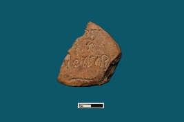 | Description / विवरण | A broken terracotta seal bearing a three line inscription in proto Bengali script. There is nothing visible on the reverse side. |