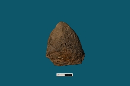 | Description / विवरण | A terracotta seal bearing a three line inscription in proto Bengali script. Nothing on the reverse side . The object is almost triangular-shaped. |