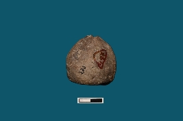 | Description / विवरण | A Terracotta seal bearing a circle with some depiction on the obverse side. The object is almost triangular-shaped. |
