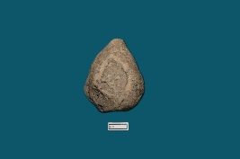| Description / विवरण | A Terracotta seal bearing a circle with some depiction on the obverse side. Nothing is visible on the reverse side. The object is almost triangular-shaped. |