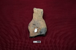 | Description / विवरण | A terracotta plaque showing an animal figurine. Only the face is partly identifiable. The rest is not identified. |