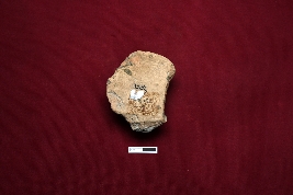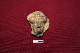 | Description / विवरण | A fragmented terracotta head of a human figurine wears a headgear atop. Only the nose and lips offer a glimpse, the rest is not visible |
