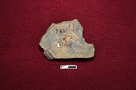 | Description / विवरण | A terracotta plaque captures figurines engaged in household tasks. One figure stands extreme left in a posture of activity, holding a stick, adorned with a waistbelt and bangle. Adjacent, another figure, partially obscured, also holds a stick, likely engaged in the same task. In right a seated female figure, embellished with large circular earrings and a headband. She too wields a stick, indicative of her involvement in the grinding of spices. At the bottom, another face emerges, though its identity remains elusive. |