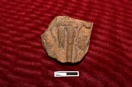| Description / विवरण | Within a terracotta plaque, a male figurine emerges, intact from the waist to above the ankle. A three-tier beaded waist belt graces his form, complemented by floral motifs scattered across the plaque. |