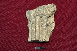 | Description / विवरण | On a terracotta plaque, a human figurine stands preserved from the upper belly to above the ankle. Adorned with a three-tier beaded waist belt, the figure exudes elegance amidst the decorative embellishments scattered across the plaque. |