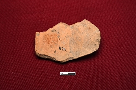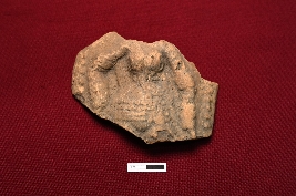 | Description / विवरण | A terracotta plaque unveils a female figurine, preserved from neck to lower belly. Despite the near absence of both hands a four-tier beaded waist belt adorns her form, with a thread delicately placed across the bust. |