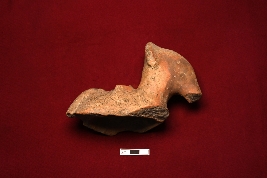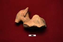 | Description / विवरण | A terracotta animal, smooth-surfaced and red in color, displays a partly visible face with a high back. However, the rest of its form lies broken. |