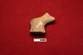 | Description / विवरण | A terracotta animal figurine with a flattened base. The face is partly visible without any distinct features. This object was likely used for decorative or recreational purposes. |