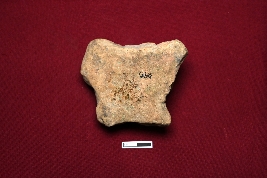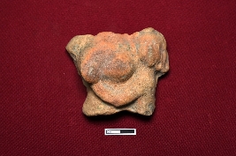 | Description / विवरण | A terracotta fragment showing a broken bust of a female figurine. Only the breasts are visible; the rest is not discernible. |