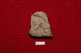 | Description / विवरण | A terracotta decorative plaque displaying various decorative elements. Dotted and line designs can be seen across the plaque. |