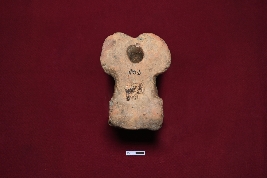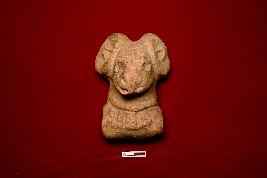 | Description / विवरण | The terracotta toy cart resembles a decorated animal figurine, probably a horse. The face is almost visible with eyes, nose, and mouth. The base of the figurine is decorated, and the ears are visible with decorations. A channel is placed at the bottom of the object to ensure the placement of the axle for holding wheels on both sides. There is a hole in the back of the figurine, probably used for hanging purposes. |