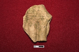 | Description / विवरण | A terracotta plaque displays a human figurine intact from the belly to the upper knee. It features a three-tier waist belt decorated with a beaded design, and the right palm is placed on the belly. Impressions of cloth can be seen on the legs. |