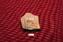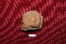 | Description / विवरण | A terracotta plaque shows broken parts of the bust of a female figurine. The breasts are visible. The left hand and a necklace with circular decorations attached to the bottom are also visible. |