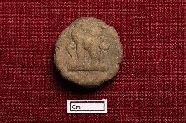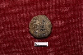 | Description / विवरण | A terracotta seal is circular in shape. On its obverse, half of a human figurine is visible with two objects depicted on either side. The object on the right is identified probably as a snake, while the one on the left is fragmented. |