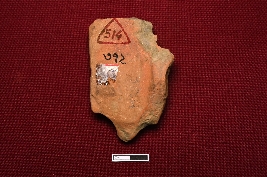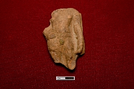 | Description / विवरण | A fragmented terracotta plaque shows a male figurine. The object is intact from neck to knee. The left hand is straight in nature, while the right one is not visible. |