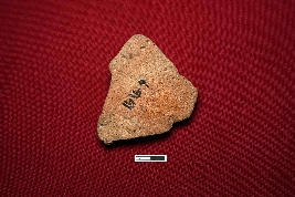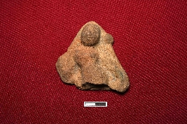 | Description / विवरण | A terracotta plaque shows a female with a slightly bent right side, while her head is bent towards the left. The object is intact from the top to the belly. Facial expression is not visible. Breasts can be seen. Hands are missing. |