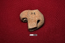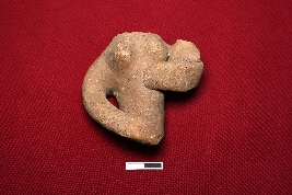 | Description / विवरण | A terracotta figurine shows the posture of a mother and child. While the child is not fully visible, it can be presumed that the female figurine holds a child on her left lap. The figurine is intact from neck to waist. |