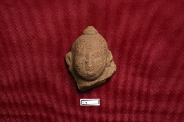 | Description / विवरण | A terracotta human head with a knot placed on top. Eyes, nose, and lips are partly visible. Ears are also depicted. |