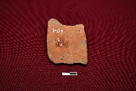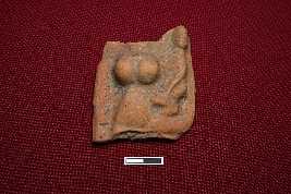 | Description / विवरण | Terracotta plaque showing a bust of a mother and a child standing in her left lap. Breasts are prominent with narrow belly widening towards waist. |