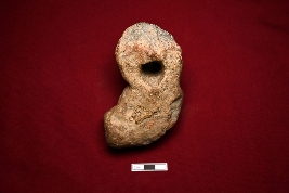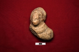 | Description / विवरण | A partially broken animal figurine with a partly smooth surface. The face is entirely damaged, and a perforation is visible at the back of the object, suggesting it may have been used for hanging purposes. |