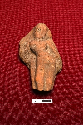 | Description / विवरण | A terracotta plaque depicts a female figurine bent towards the right side in a dancing posture. The hands are broken, but the object remains intact up to the lower knee. Facial expression is not visible. |