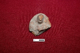 | Description / विवरण | A fragmented terracotta plaque shows the outline of a human figurine, with the rest not visible. |