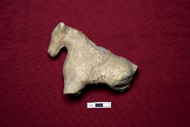 | Description / विवरण | A fragmented animal figurine, smooth and red in color. The face is partly visible, with the specific animal type remaining unidentified. |