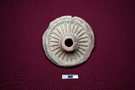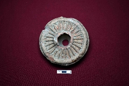 | Description / विवरण | A well decorated terracotta wheel of a toy cart which is buff in colour with smooth surface. The central of the wheel is thick and has a perforation is there. The surface of the object is decorated with spoked design. Central part is partly broken. |