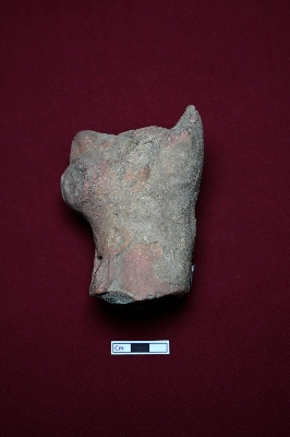 | Description / विवरण | This fragmented terracotta piece shows a partially visible animal face. The rest of the face cannot be identified due to damage. |