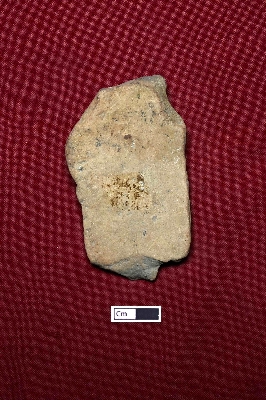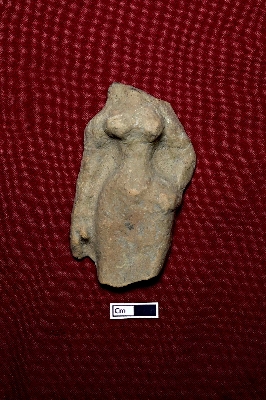 | Description / विवरण | A fragmented terracotta plaque displays a female figurine intact from neck to knee. Her left-hand rests on her waist, while her right hand is straight. Her prominent breasts lead to a narrow belly that gradually widens towards the waist. |