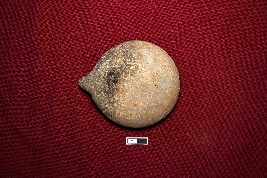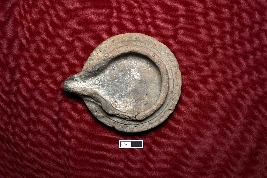 | Description / विवरण | A terracotta lamp with an intact wick and a red-colored slip treatment. It has a straight, thick rim and a smooth surface. |