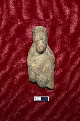 | Description / विवरण | A terracotta plaque shows a male figurine intact from the top to the upper belly. The facial expression is not visible, and no other features are identified. |