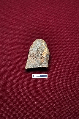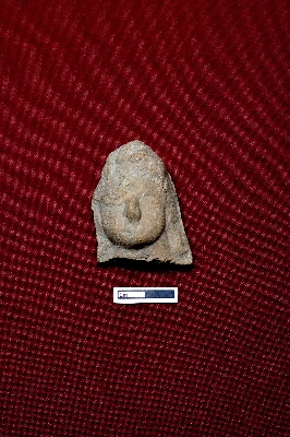 | Description / विवरण | This terracotta head of a human figurine reveals only the nose and partially visible eyes. Something is attached on the top. |