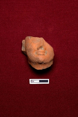 | Description / विवरण | A terracotta head of a human figurine, likely representing a female, is half-broken. Only the nose and lips are visible. |