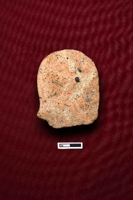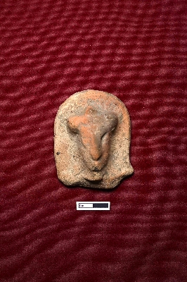 | Description / विवरण | A terracotta plaque depicting the face of an animal figurine. The facial expression is not clearly identified. |