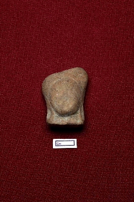 | Description / विवरण | A terracotta plaque depicting the head of a human figurine. No facial expression has been identified. |