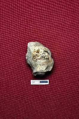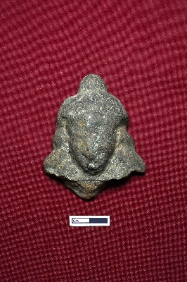 | Description / विवरण | A terracotta head of a human figurine. The facial expression is not visible. Curls are depicted on both sides of the face, and a knot is placed on top. |