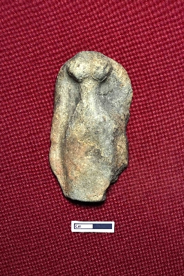 | Description / विवरण | A terracotta plaque features a headless female figurine, intact from the neck to above the knee. The belly is narrow, widening towards the waist. The rest of the figurine is not identifiable. |