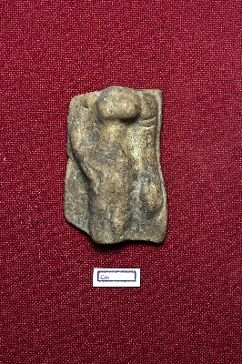 | Description / विवरण | A terracotta plaque depicts a headless female figurine, intact from the neck to below the knee. The belly is narrow and widens towards the waist. The left hand is straight, while the right hand rests on the thigh. Two cut marks are visible on the left biceps. |