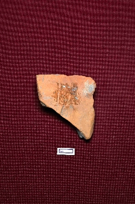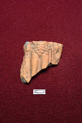| Description / विवरण | A terracotta plaque displays a broken male figurine, intact from above the waist to above the knee. The figurine features a three-tier beaded waist belt. |