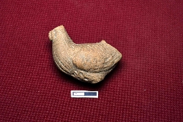 | Description / विवरण | A terracotta bird with a broken head. The object is red with a smooth surface, and the feathers are intricately detailed. |