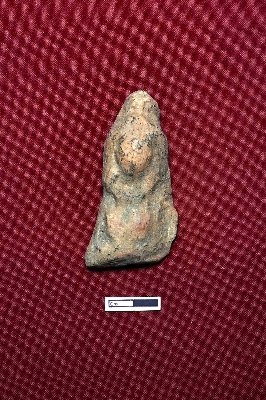 | Description / विवरण | A terracotta plaque depicting a female figurine, intact from the top to just above the belly. The facial expression is not visible, and the rest of the figure cannot be identified due to damage. |