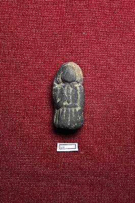 | Description / विवरण | A terracotta plaque showing a female figurine, intact from the top to the knee. The facial expression is not visible. The left hand is placed on the thigh, while the right hand is positioned in front of the right shoulder. The figure is wearing clothing, which is depicted. |