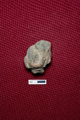 | Description / विवरण | A terracotta plaque showing the head of a human figurine. The facial expression is not visible; only the nose and broken lips are discernible. |