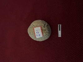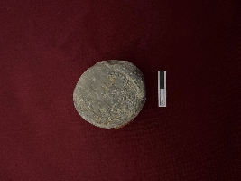 | Description / विवरण | A circular-shaped terracotta seal with an inscription. It features a standing human figurine with its face turned to the right. The remaining details are not traceable. |