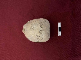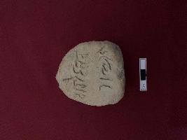 | Description / विवरण | A terracotta seal featuring a three-line inscription in Proto-Bengali script. On the reverse, two lines of inscription are visible. |