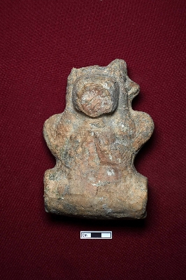 | Description / विवरण | The terracotta toy resembles a decorated animal figurine. The face is completely damaged. The upper part of the body is adorned with designs, and a hole is visible on the backside for hanging purposes. |