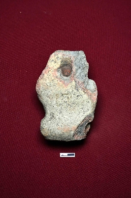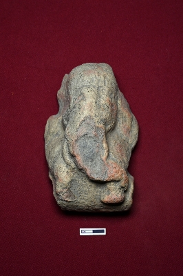 | Description / विवरण | A fragment of a terracotta toy depicts an elephant. The trunk is positioned to the left and is partly broken, while the tusk and front legs are visible. |