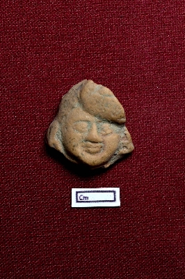 | Description / विवरण | A terracotta head of a human. Facial expression is completely visible. Parted hair is placed on the left of the forehead. |